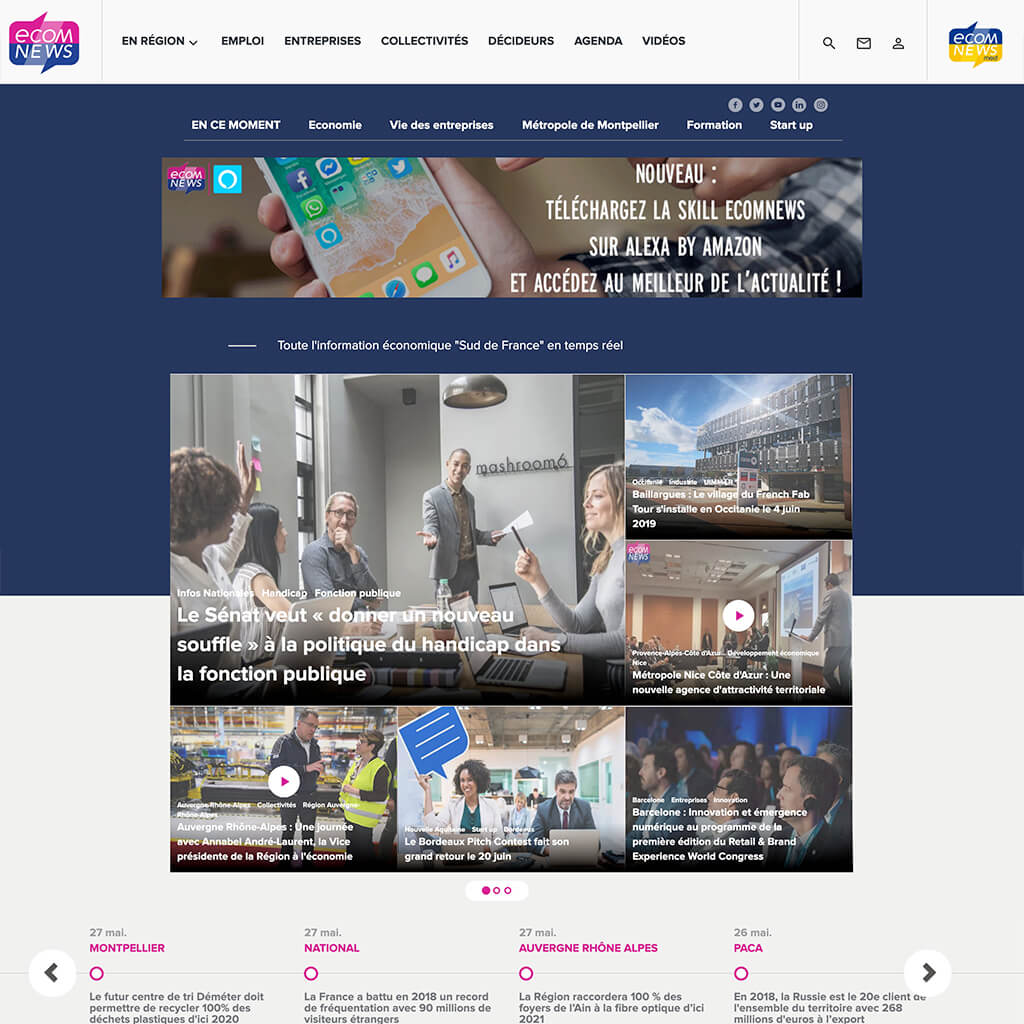 Ecomnews est une plateforme numérique de presse créée en 2015 qui privilégie la qualité journalistique et la pertinence de ses informations au service de l’actualité économique des décideurs, des entreprises, des collectivités et des régions du Sud de la France.
